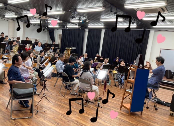 幅広い世代で和気あいあいと楽しく活動中!息長~く音楽を楽しめるそんな楽団です。