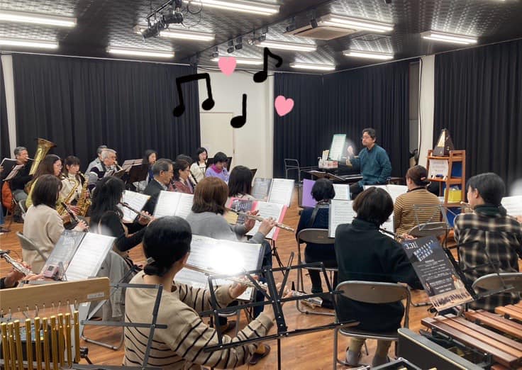 幅広い世代で和気あいあいと楽しく活動中!息長~く音楽を楽しめるそんな楽団です。