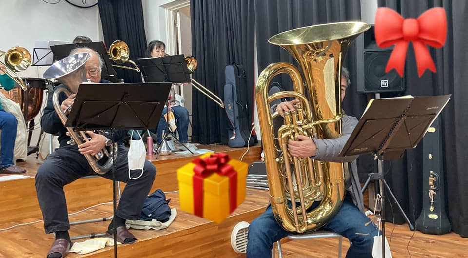 指揮者から、コロナも第8波で4年目になろうとしている。最近は幼稚園や老人ホームへの依頼演奏に行けず、そういう本番が大事だったなと思う。1年間大曲の練習ばかりだとダレてしまうので、身近な目標があるといい。年が明けたら、小さいイベントにも行けたらいいなぁ。普通の形になっていけたらいいなぁということでした。