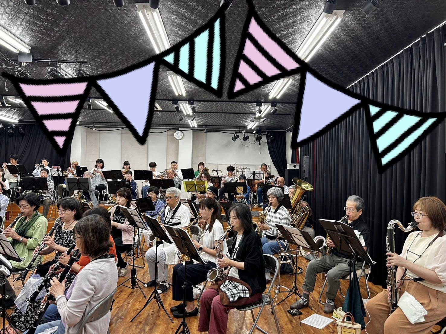 幅広い世代で和気あいあいと楽しく活動中!息長~く音楽を楽しめるそんな楽団です。