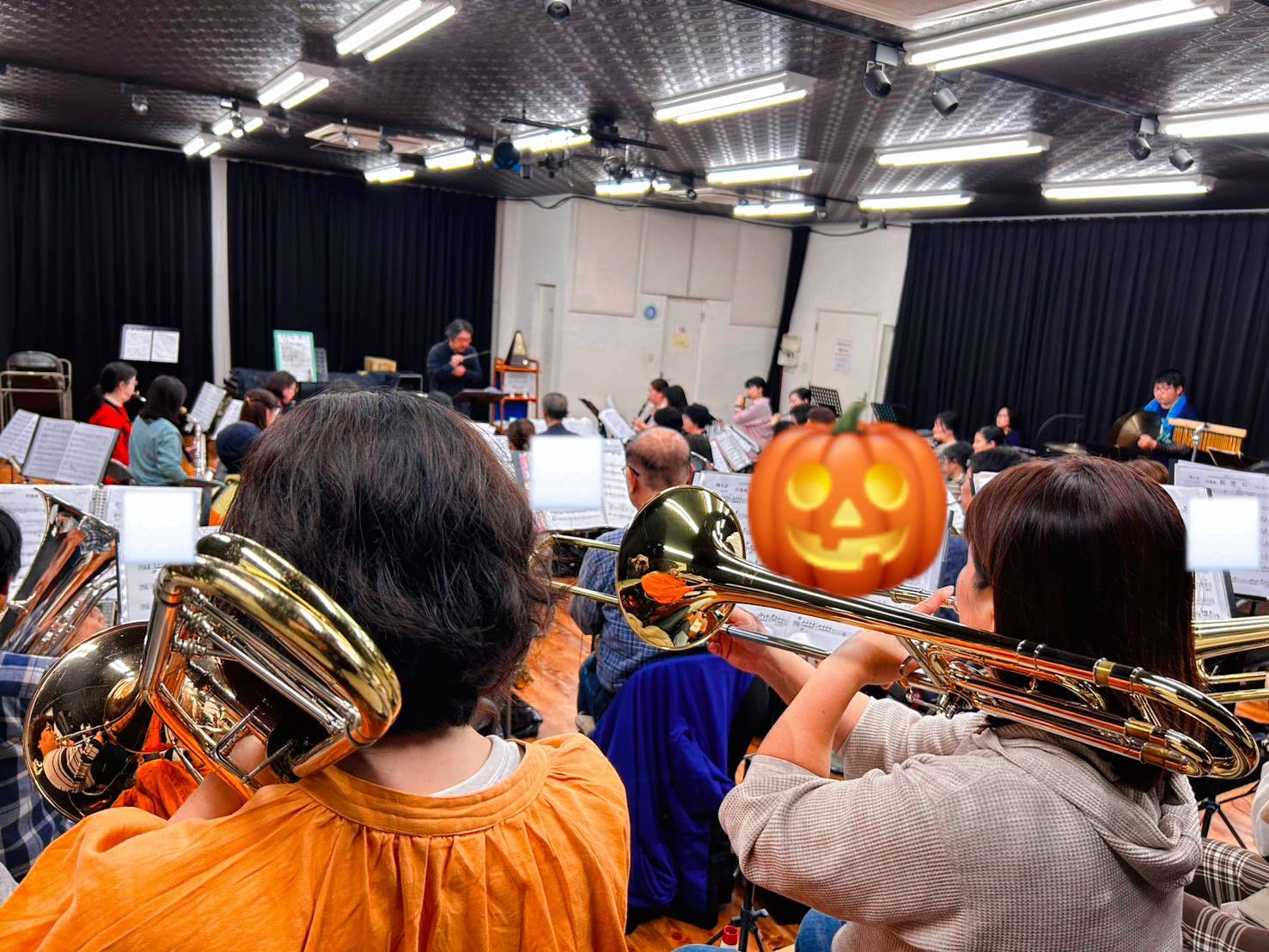 トロンボーンに待望のバストロンボーンの方が入団して下さいました。以前から賛助として来て頂いたこともあり、ご一緒できるのをとても楽しみにしていました。バストロの楽譜も多くなり吹いてくださる方がいるのはとても有り難く、みんな興味津々で楽器を見たりはしゃいでしまいました。失礼しました。今後ともよろしくお願いします!