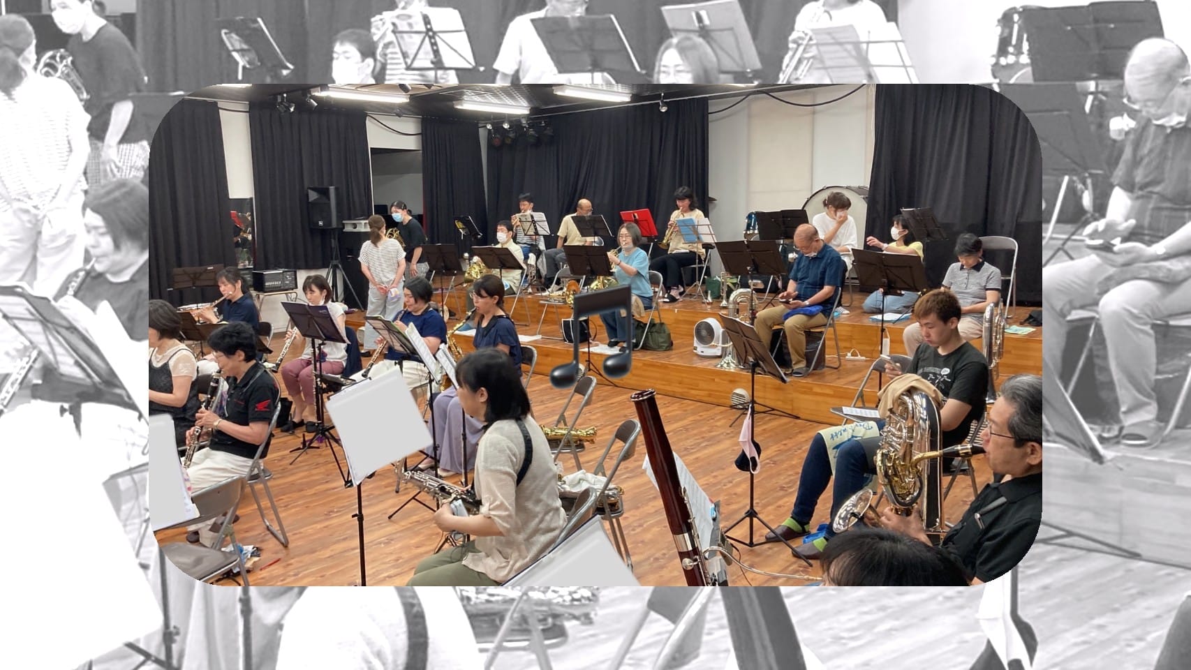 幅広い世代で和気あいあいと楽しく活動中!息長~く音楽を楽しめるそんな楽団です。