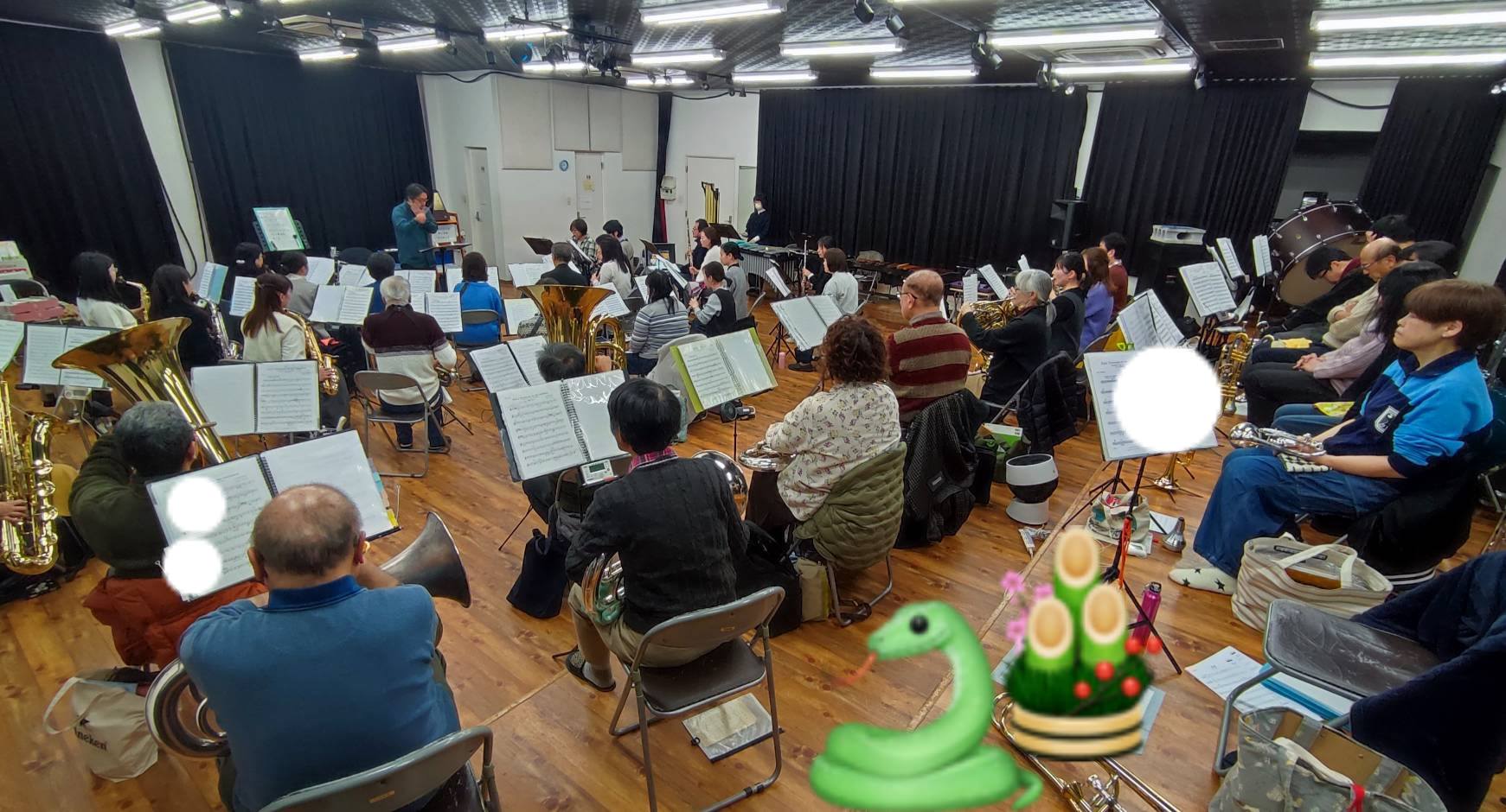 朝早くから音蔵に多くの団員が集まり各自の音出しが始まっています。お正月で練習日が1回とんだので、早く吹きたくてうずうずしていたのかもしれませんね。